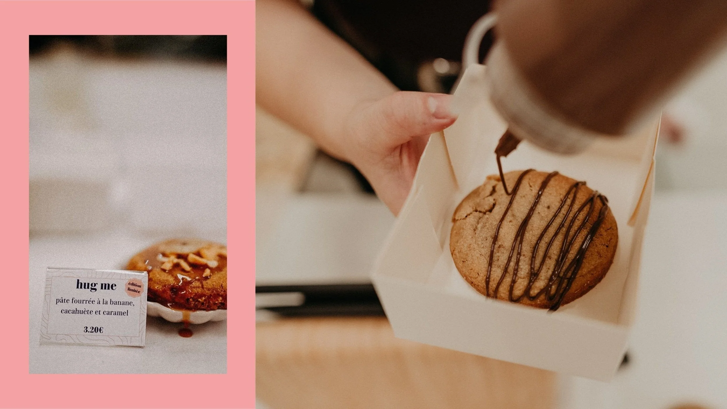 L’identité de Naughty Cookies repose sur une sensualité gourmande : des nappages qui dégoulinent, un univers visuel évocateur et des noms de produits qui attisent la curiosité. L’expérience ne s’arrête pas là : lors des événements, les cookies sont sublimés sous les yeux des clients, avec un nappage coulé en direct, pour un spectacle aussi gourmand que captivant.