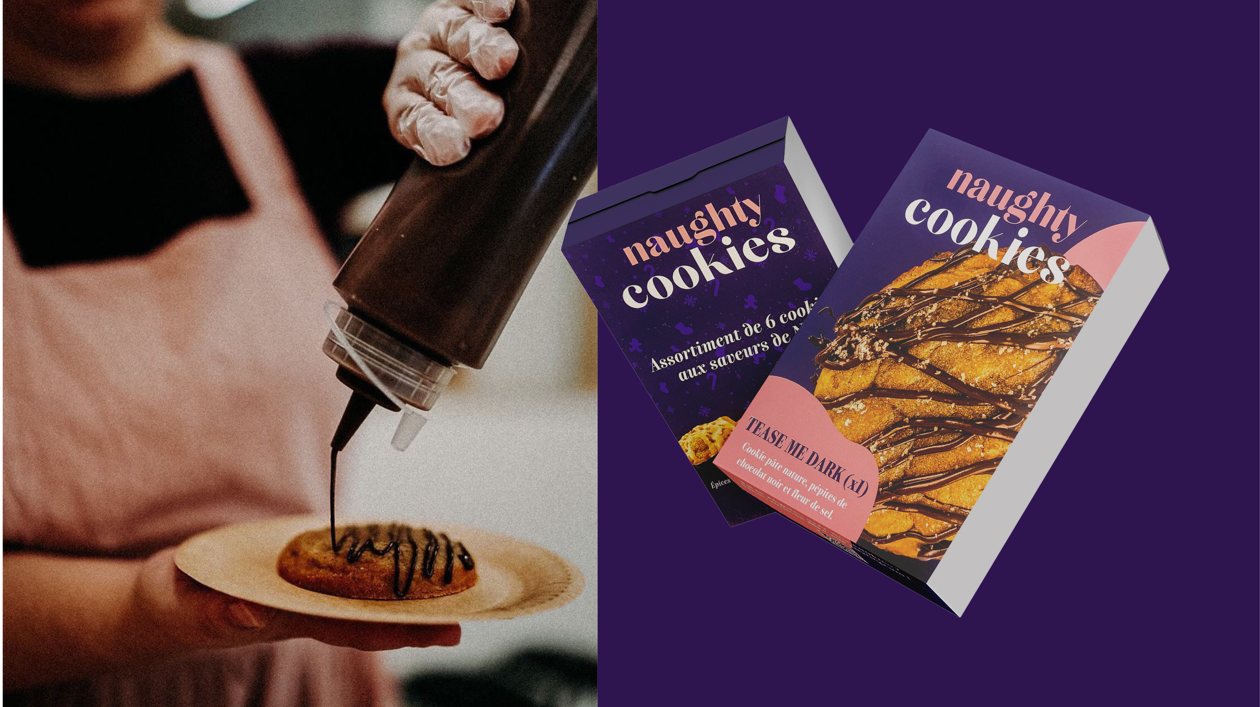 Naughty Cookies propose des cookies ultra généreux, sublimés par des nappages et des toppings. Ils sont disponibles en ligne, en grande surface et lors d’événements.